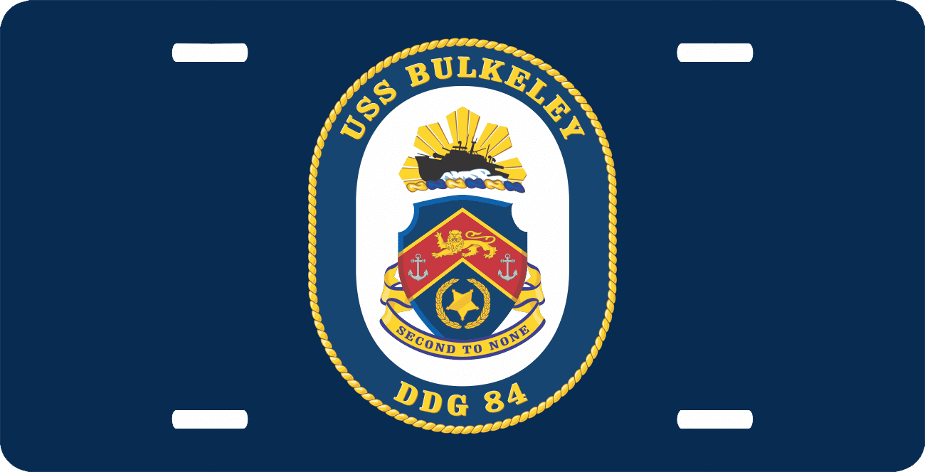This Navy USS Bulkeley DDG-84 License Plate is made from heavy gauge aluminum and has a baked enamel finish to last for many years of use. Each plate measures 5 15/16" x 11 15/16". This license plate would make a wonderful addition to your collection or a great gift.