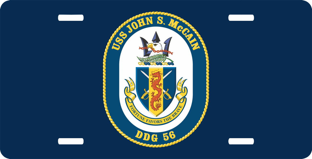 This Navy USS John S License Plate is made from heavy gauge aluminum and has a baked enamel finish to last for many years of use. Each plate measures 5 15/16" x 11 15/16". This license plate would make a wonderful addition to your collection or a great gift.