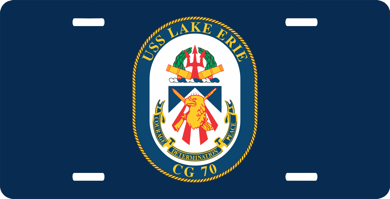 This Navy USS Lake Erie CG-70 License Plate is made from heavy gauge aluminum and has a baked enamel finish to last for many years of use. Each plate measures 5 15/16" x 11 15/16". This license plate would make a wonderful addition to your collection or a great gift.