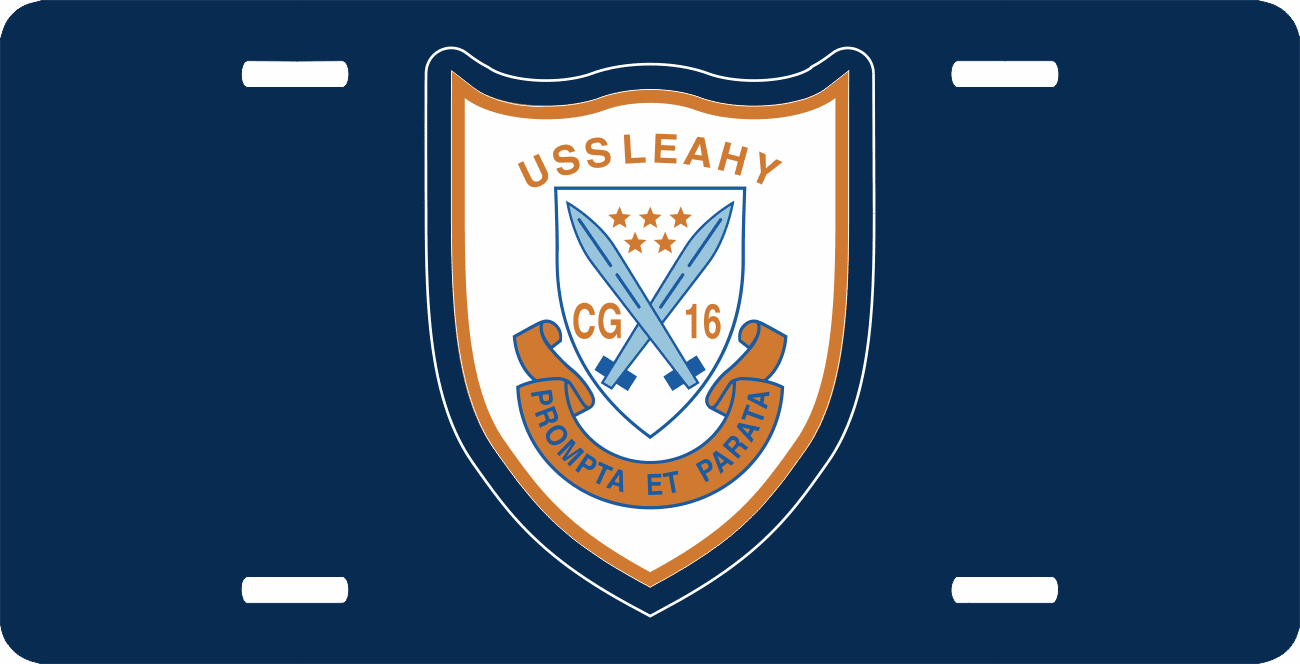 This Navy USS Leahy CG-16 License Plate is made from heavy gauge aluminum and has a baked enamel finish to last for many years of use. Each plate measures 5 15/16" x 11 15/16". This license plate would make a wonderful addition to your collection or a great gift.