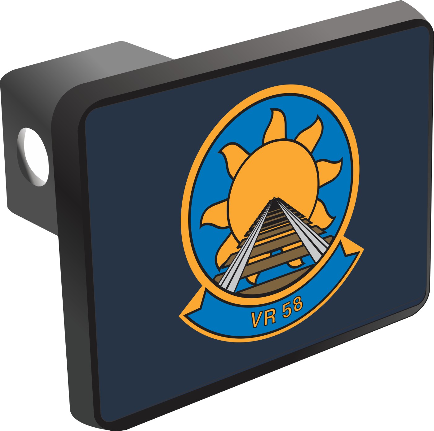 This Navy VR-58 Squadron Hitch Cover is proudly Made in the USA. Each Hitch Cover's face plate measures 4.7" x 3.4" and is applied on a black heavy duty injection molded plastic 2" hitch cover; link pin not included. The face plate of the hitch cover is sublimation printed to provide a beautiful glossy finish sure to catch the eye. This hitch cover would make a wonderful addition to your truck or other vehicle.A percentage of the sale of each MilitaryBest item is forwarded to the licensing departments of each respective branch of service in support of the MWR (Morale, Welfare, & Recreation) program. These payments are made by either ALL4U LLC or the wholesaler from where the item originated. Our team thanks you for your service and your support of these programs.