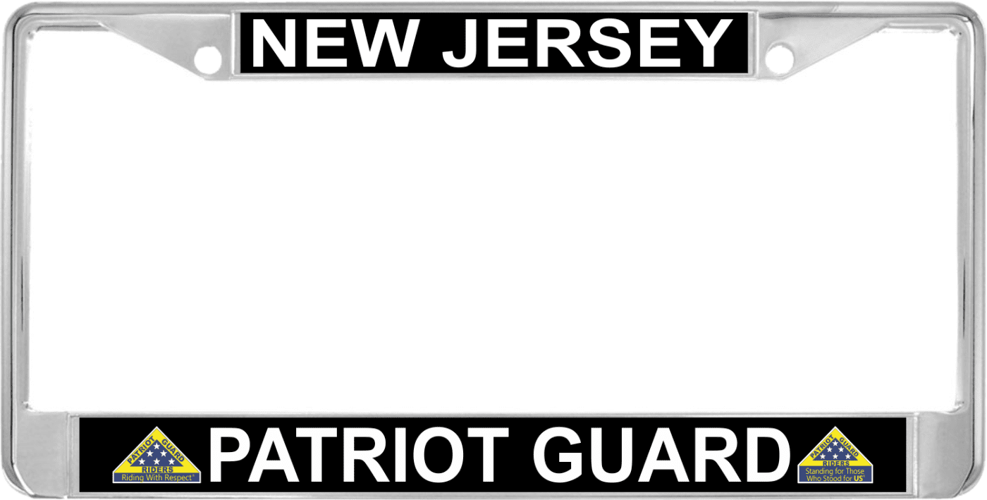 This New Jersey Patriot Guard Automobile License Plate Frame is proudly produced at our facility in Scottsboro, Alabama. Each Chrome Dipped Alloy Frame has Poly Coated Aluminum Inserts which allow our production team to provide you with High Quality Designs. Unfortunately, this frame is not offered as a Motorcycle Frame.Please check with your state and local regulations regarding suitability for displaying this Automobile License Plate Frame on your vehicle since these regulations may have changed in your state. Various weather and road conditions may impact the life span of your frame e.g. salted roads, long exposure to direct sunlight etc.