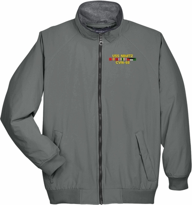 Note: Some of the Color Options pictured may not be available. Available Color Options are listed on the drop down menu above.MilitaryBest is proud to offer this quality USS Nimitz CVN-68 with Desert Storm Ribbons (Kuwait) 3-Season Jacket. This 3-Season Jacket is made from a 3-Layer system consisting of a nylon shell, an insulator layer, Nylon-lined sleeves, and an inside layer of fleece for comfort. The jacket features include a sturdy black enamel front-zipper, raglan sleeves, outsize zip pockets, an inside zip security pocket, YKK zippers, and a banded-bottom. This Jacket will make an excellent addition to your wardrobe, or a quality gift. Your satisfaction is guaranteed! Depending on your location this jacket can be worn in fall, winter, and spring. This jacket is custom embroidered at our facilities in Scottsboro, AL.