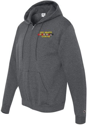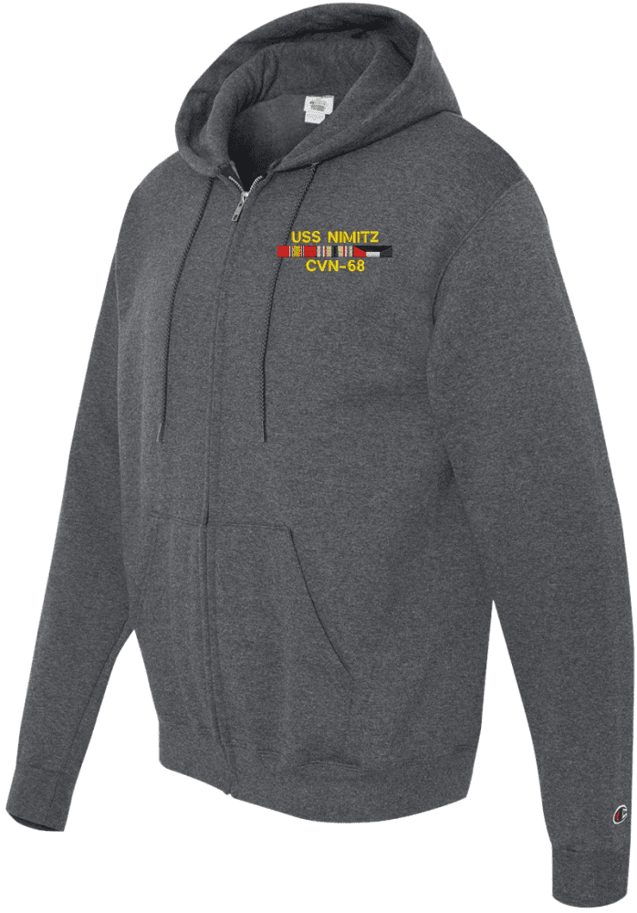 MilitaryBest has expanded its line of apparel with this custom embroidered USS Nimitz CVN-68 with Desert Storm Ribbons (Kuwait) Full-Zip Hoodie. This will make an excellent addition to your wardrobe, or a great gift. Your satisfaction is Guaranteed! This is custom embroidered at our facilities in Scottsboro, AL.