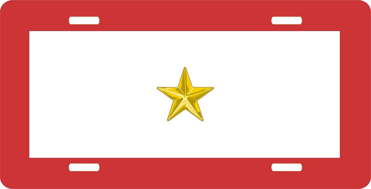 This One Gold Star License Plate is made from heavy gauge aluminum and has a baked enamel finish to last for many years of use. Each plate measures 5 15/16" x 11 15/16". This license plate would make a wonderful addition to your collection or a great gift.