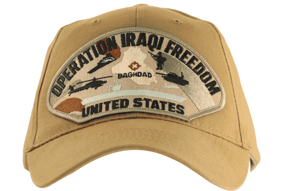 This Operation Iraqi Freedom 'United States' Ball Cap is six panel, emblematic, cotton twill cap., full back (not mesh) and Each has an adjustable strap. All our Military hats are fully guaranteed. Some people call them Military Covers or Military Hats. We will be glad to include scrambled eggs, which is an embroidered gold oak leaf added to the brim of the cap. For caps ordered with custom embroidered personalized text please allow an additional 3 to 5 days production time. All custom back text will be embroidered in ALL CAPITAL LETTERS. Caps with back text or eggs are non-returnable unless there is a material defect in the cap.
