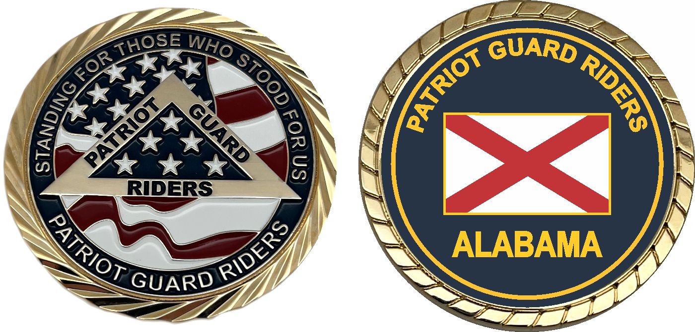 This 1 3/4” Patriot Guard Riders Alabama Challenge Coin is proudly offered by MilitaryBest. This PGR coin has beautiful enamel finish on one side and an crisp clean Patriot Guard Riders Alabama design on the opposite side.