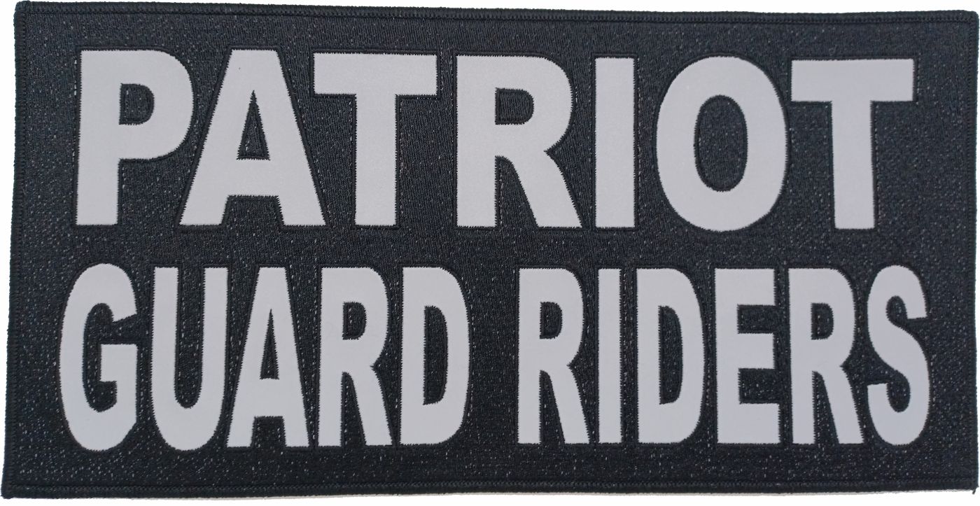 We are proud to offer this Patriot Guard Riders Reflective Back Patch. This rectangular patch measures 12" x 6".