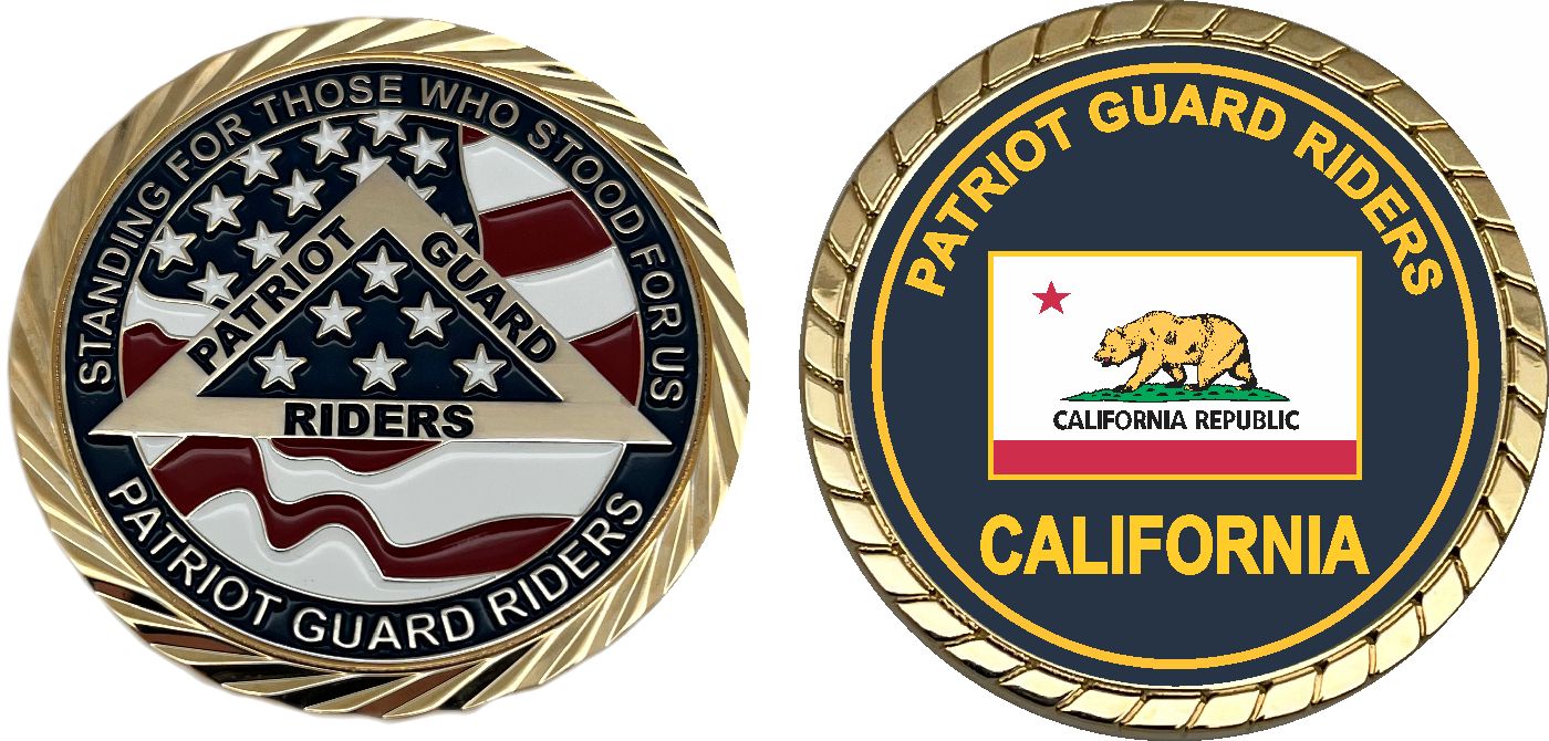This 1 3/4” Patriot Guard Riders California Challenge Coin is proudly offered by MilitaryBest. This PGR coin has beautiful enamel finish on one side and an crisp clean Patriot Guard Riders California design on the opposite side.