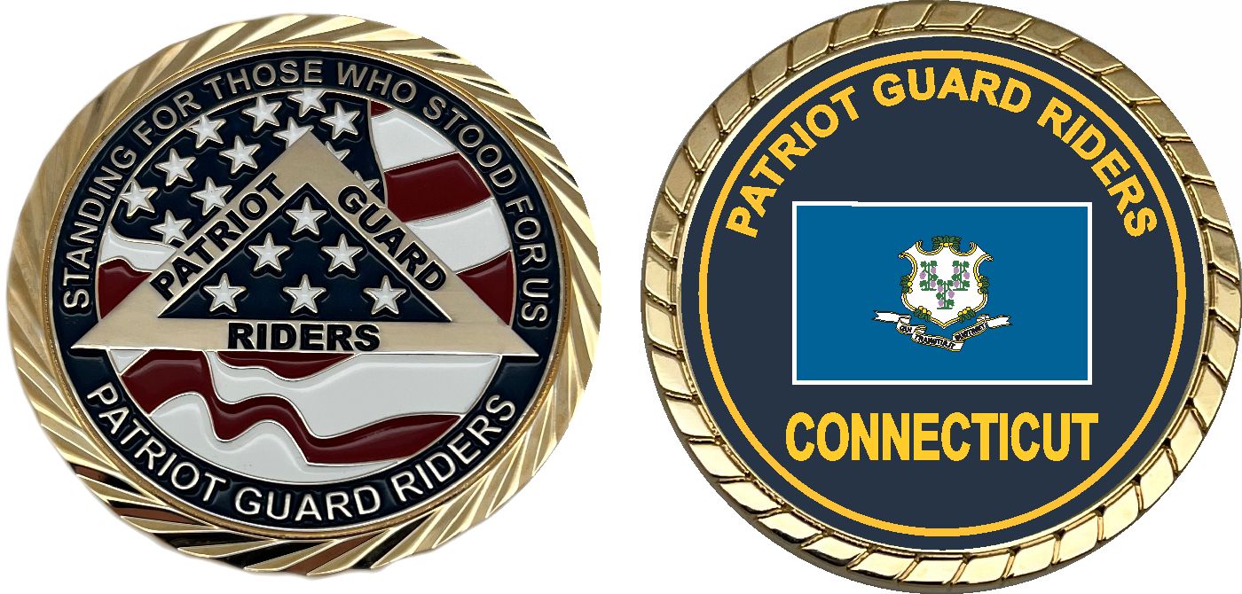 This 1 3/4” Patriot Guard Riders Connecticut Challenge Coin is proudly offered by MilitaryBest. This PGR coin has beautiful enamel finish on one side and an crisp clean Patriot Guard Riders Connecticut design on the opposite side.