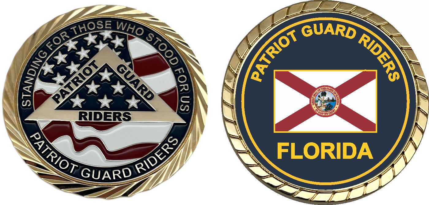 This 1 3/4” Patriot Guard Riders Florida Challenge Coin is proudly offered by MilitaryBest. This PGR coin has beautiful enamel finish on one side and an crisp clean Patriot Guard Riders Florida design on the opposite side.