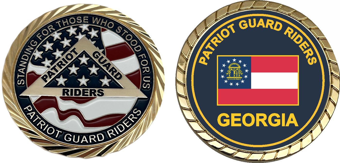 This 1 3/4” Patriot Guard Riders Georgia Challenge Coin is proudly offered by MilitaryBest. This PGR coin has beautiful enamel finish on one side and an crisp clean Patriot Guard Riders Georgia design on the opposite side.