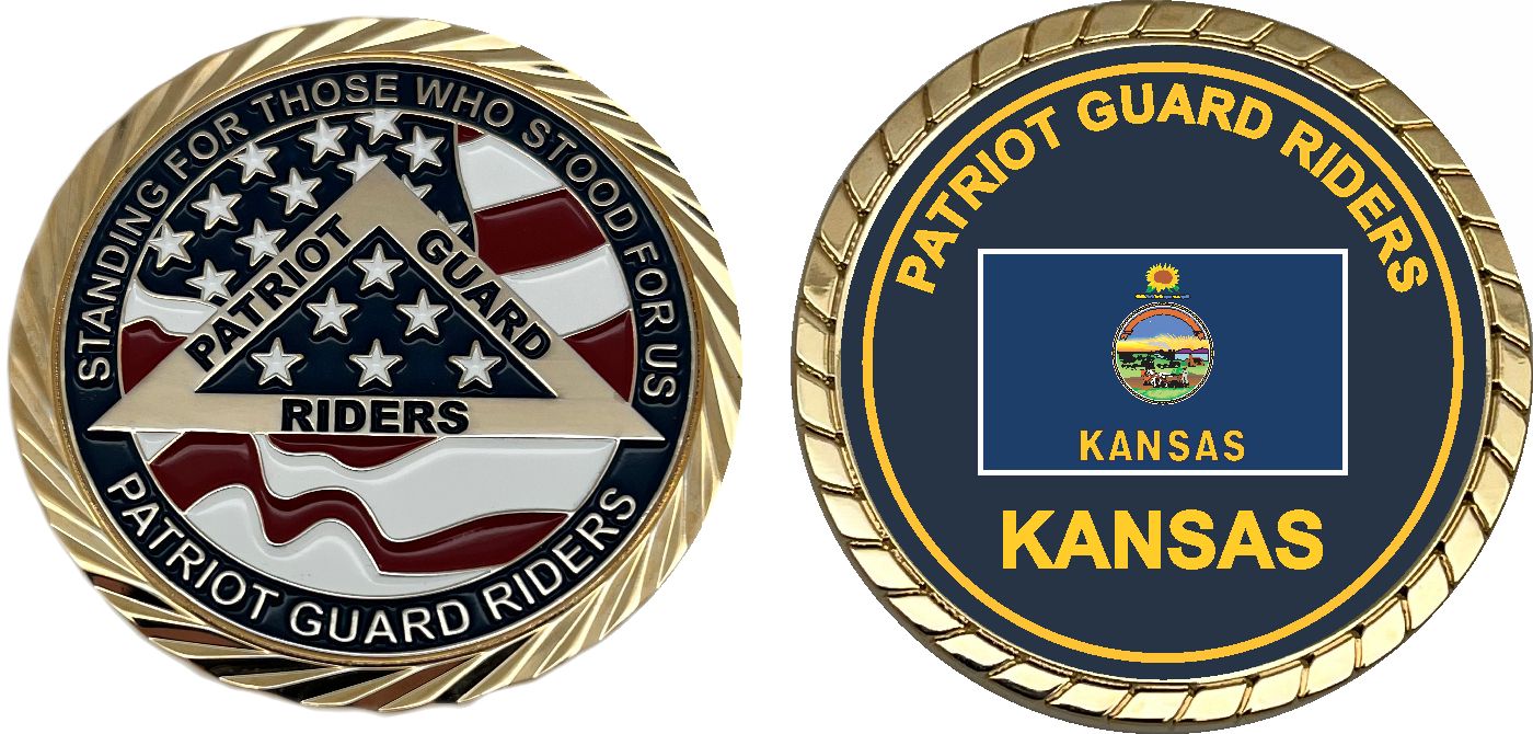 This 1 3/4” Patriot Guard Riders Kansas Challenge Coin is proudly offered by MilitaryBest. This PGR coin has beautiful enamel finish on one side and an crisp clean Patriot Guard Riders Kansas design on the opposite side.