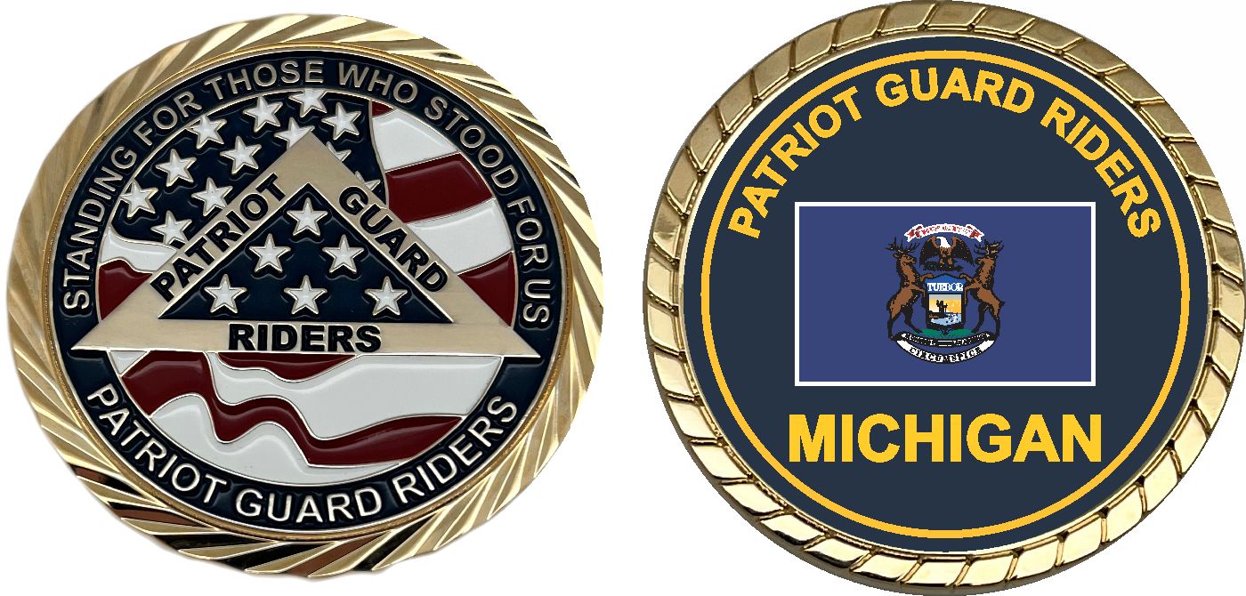 This 1 3/4” Patriot Guard Riders Michigan Challenge Coin is proudly offered by MilitaryBest. This PGR coin has beautiful enamel finish on one side and an crisp clean Patriot Guard Riders Michigan design on the opposite side.