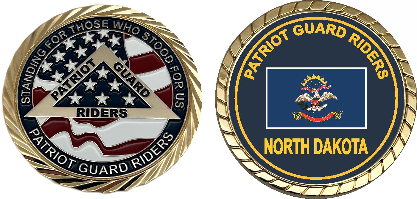 This 1 3/4” Patriot Guard Riders North Dakota Challenge Coin is proudly offered by MilitaryBest. This PGR coin has beautiful enamel finish on one side and an crisp clean Patriot Guard Riders North Dakota design on the opposite side.