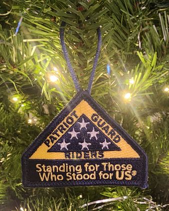 We are proud to offer this Patriot Guard Riders Ornament. This is a woven ornament of the Patriot Guard Riders "Standing for Those Who Stood for US" logo. This ornament measures 3" wide x 2.38" tall with a 1.75" loop. This ornament is double-sided.