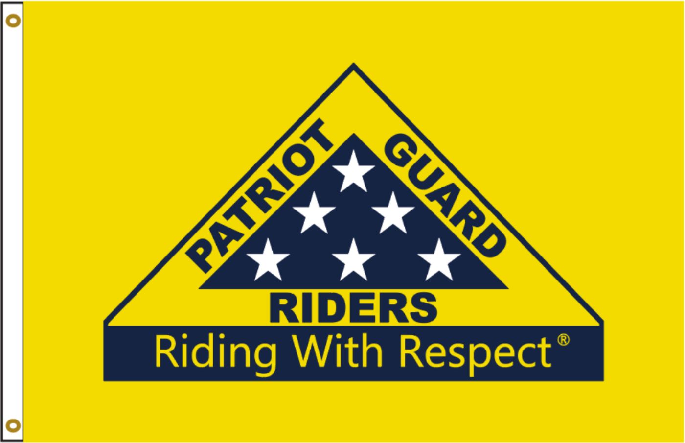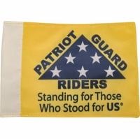 We are proud to offer this Patriot Guard Riders "Riding with Respect" Flag. This flag measures 2' x 3'. This flag is made out of nylon, is single sided, and has grommets. This flag is for Parade use only. This flag is NOT designed for high speed use.