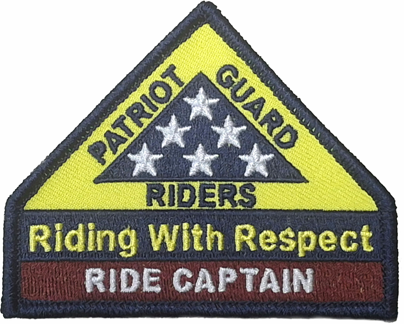 We are proud to offer this Patriot Guard Riders "Riding With Respect" Ride Captain Patch. This patch has heat seal backing and measures 3.5" x 2.8".