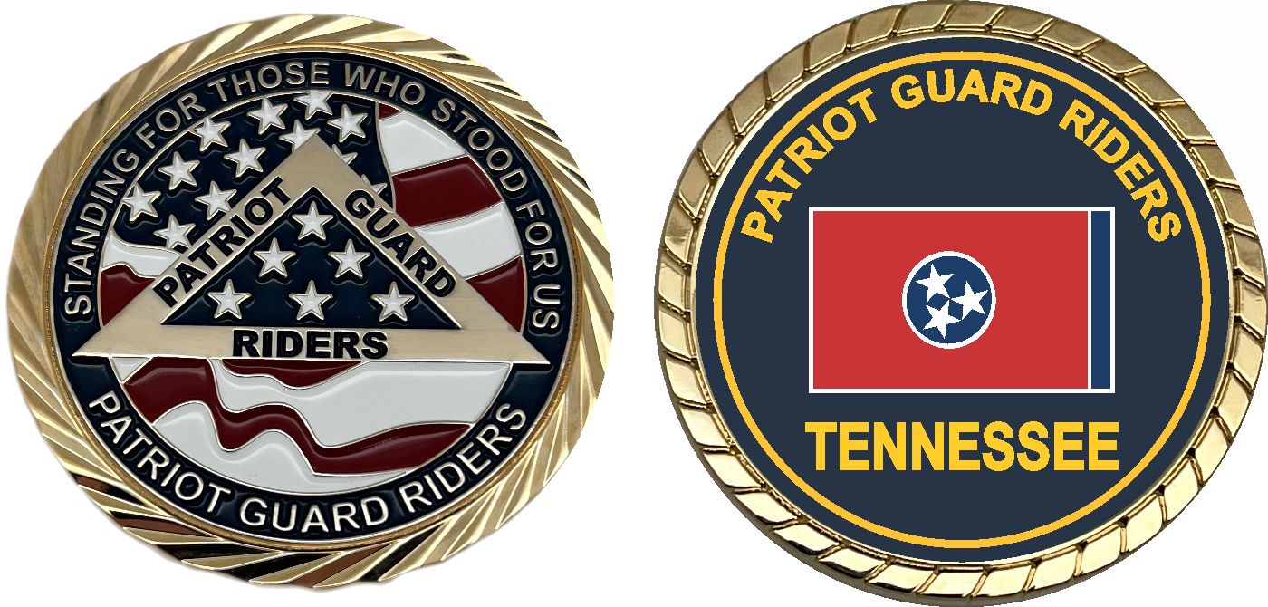 This 1 3/4” Patriot Guard Riders Tennessee Challenge Coin is proudly offered by MilitaryBest. This PGR coin has beautiful enamel finish on one side and an crisp clean Patriot Guard Riders Tennessee design on the opposite side.