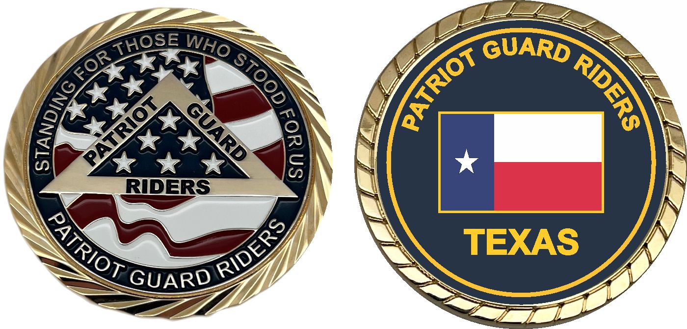 This 1 3/4” Patriot Guard Riders Texas Challenge Coin is proudly offered by MilitaryBest. This PGR coin has beautiful enamel finish on one side and an crisp clean Patriot Guard Riders Texas design on the opposite side.
