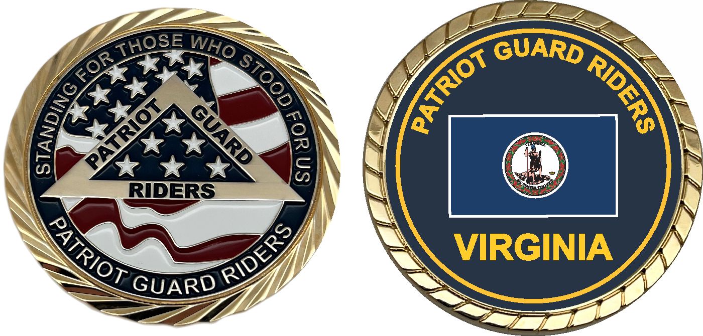 This 1 3/4” Patriot Guard Riders Virginia Challenge Coin is proudly offered by MilitaryBest. This PGR coin has beautiful enamel finish on one side and an crisp clean Patriot Guard Riders Virginia design on the opposite side.