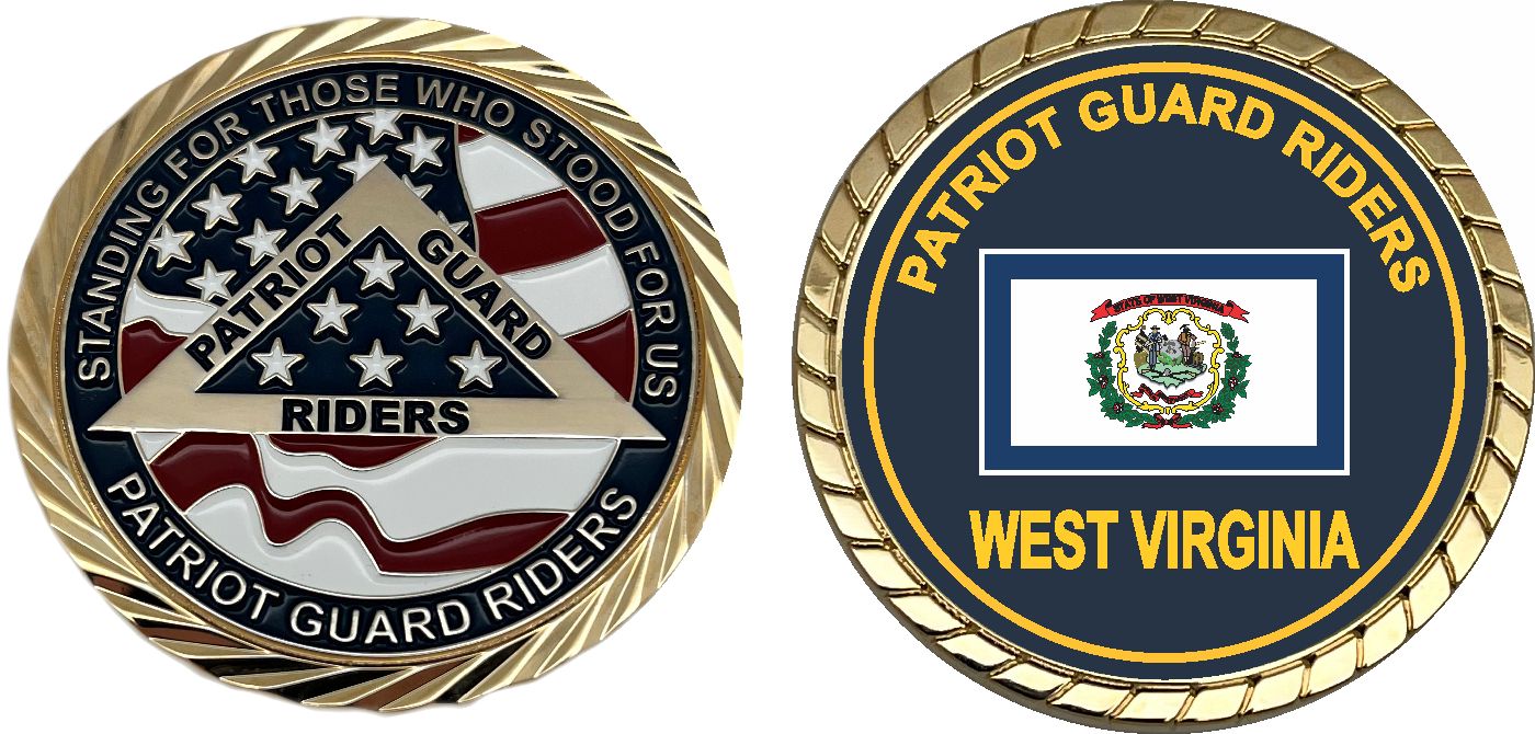 This 1 3/4” Patriot Guard Riders West Virginia Challenge Coin is proudly offered by MilitaryBest. This PGR coin has beautiful enamel finish on one side and an crisp clean Patriot Guard Riders West Virginia design on the opposite side.