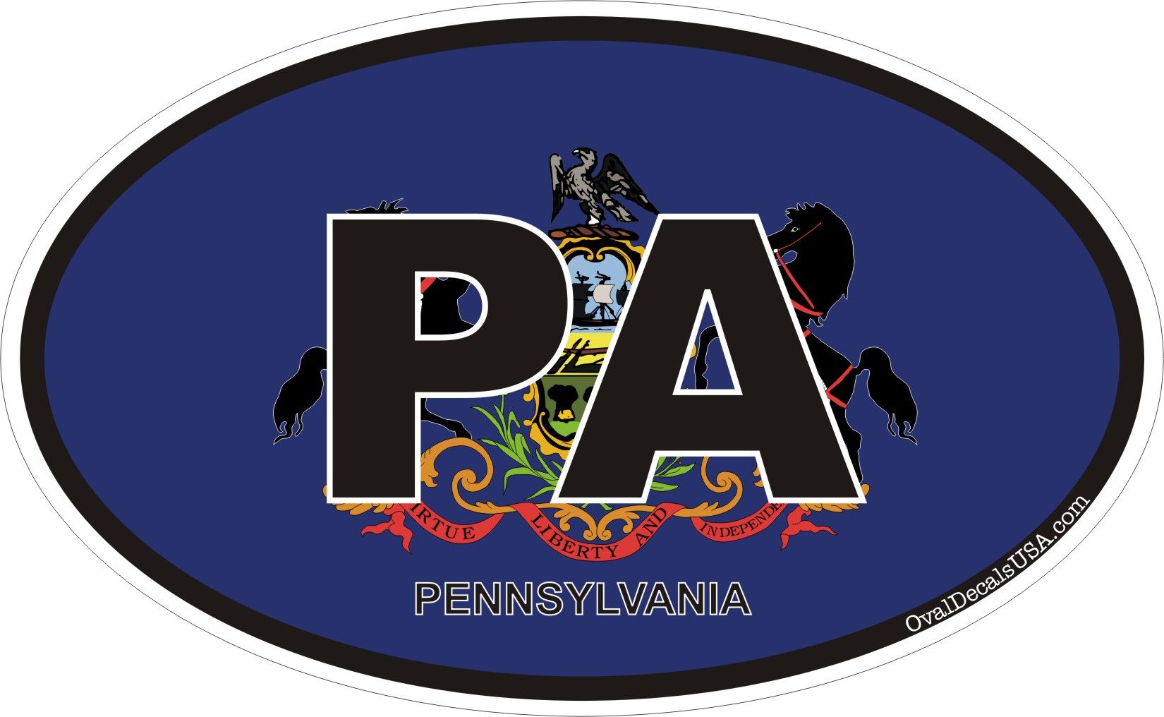 Pennsylvania State Oval StickerMade at our facility in Scottsboro, AL., our city / state vinyl transfer decals are made of the highest quality vinyl and UV resistant graphics available.