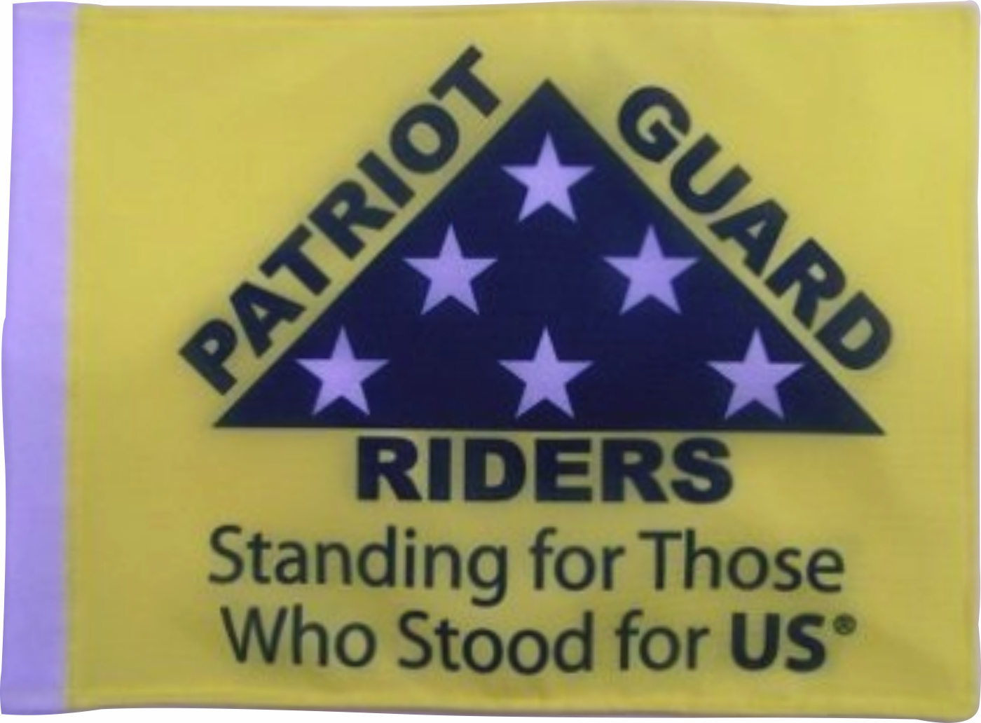 We are proud to offer this Patriot Guard "Standing For Those Who Stood For Us" Auto Flag. This flag is made of a polyknit fabric and measures 11"x15". This flag is Made in the USA!