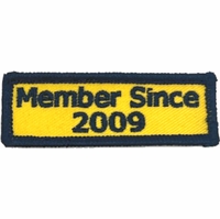 This Patriot Guard Riders Member Patch is a 3" wide x 1/2" tall yellow felt patch with a blue border. Embroidered with "Member Since 2007"
