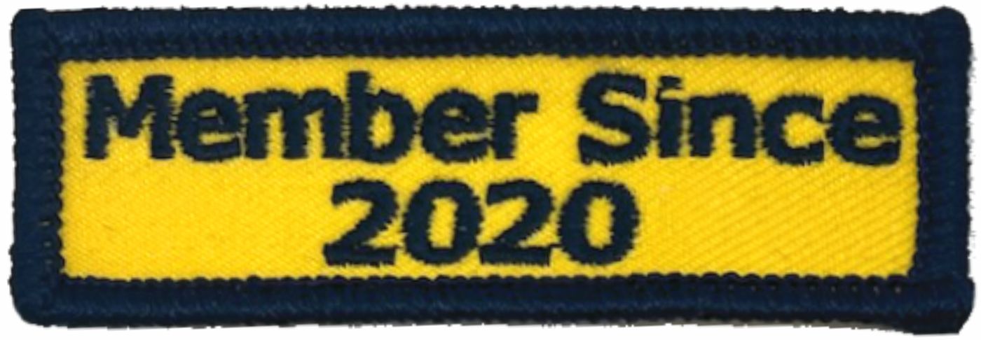 This Patriot Guard Riders Member Patch is a 3" wide x 1/2" tall yellow felt patch with a blue border. Embroidered with "Member Since 2020"