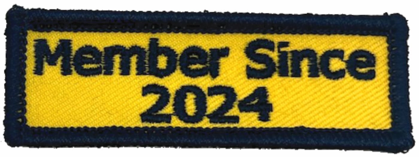 This Patriot Guard Riders Member Patch is a 3" wide x 1/2" tall yellow felt patch with a blue border. Embroidered with "Member Since 2024"