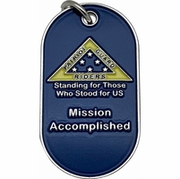 Thank you for your Patriot Guard Mission Support. This 50 Mission pin with clutch back attachment measures 1 1/4" tall x 5/8" wide.*** Pressing this pin into thick leather can result in breaking of pin. It is recommended to make holes through our leather via another method before attaching the pin ***