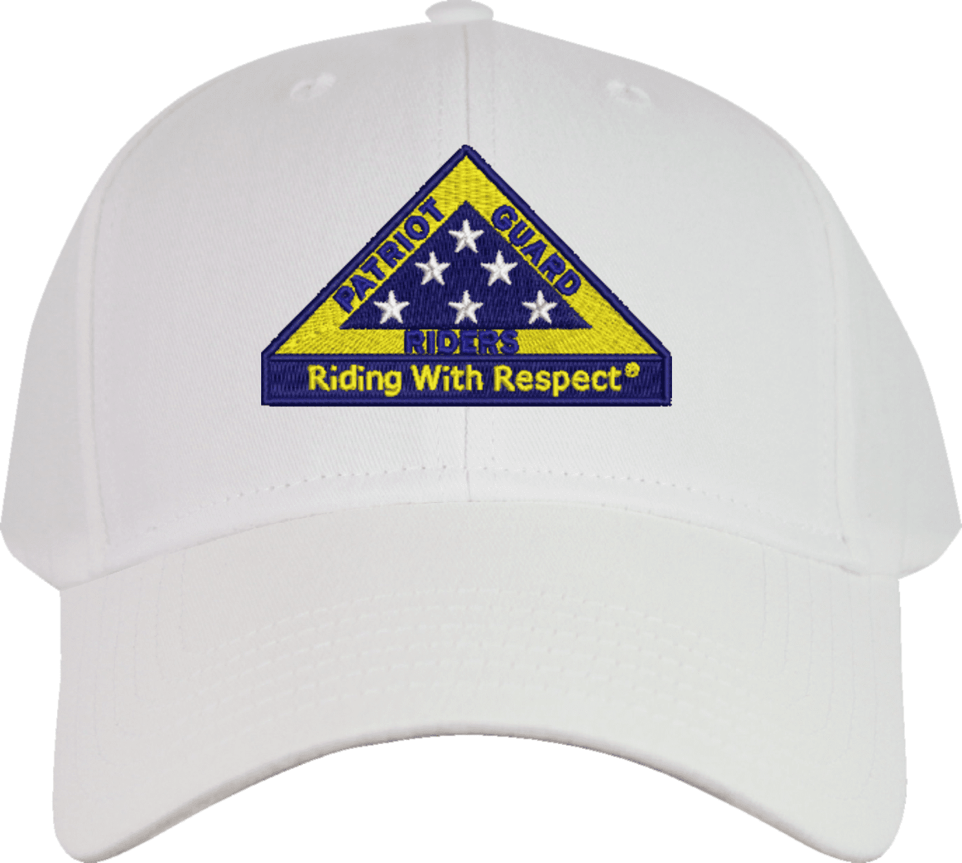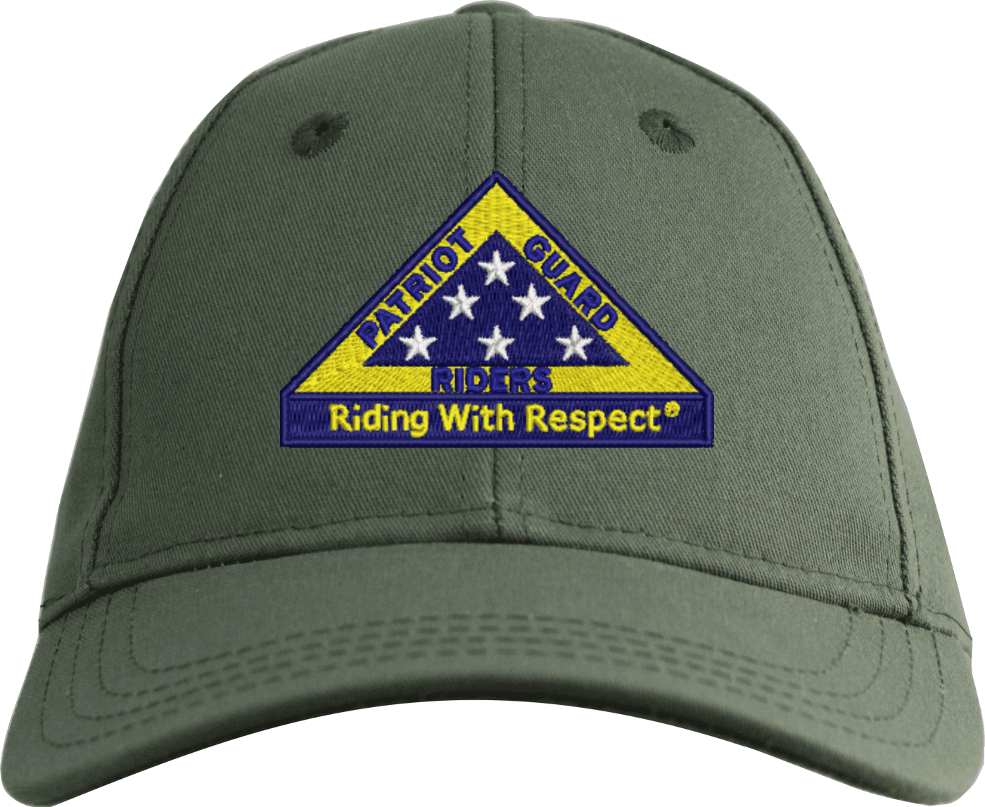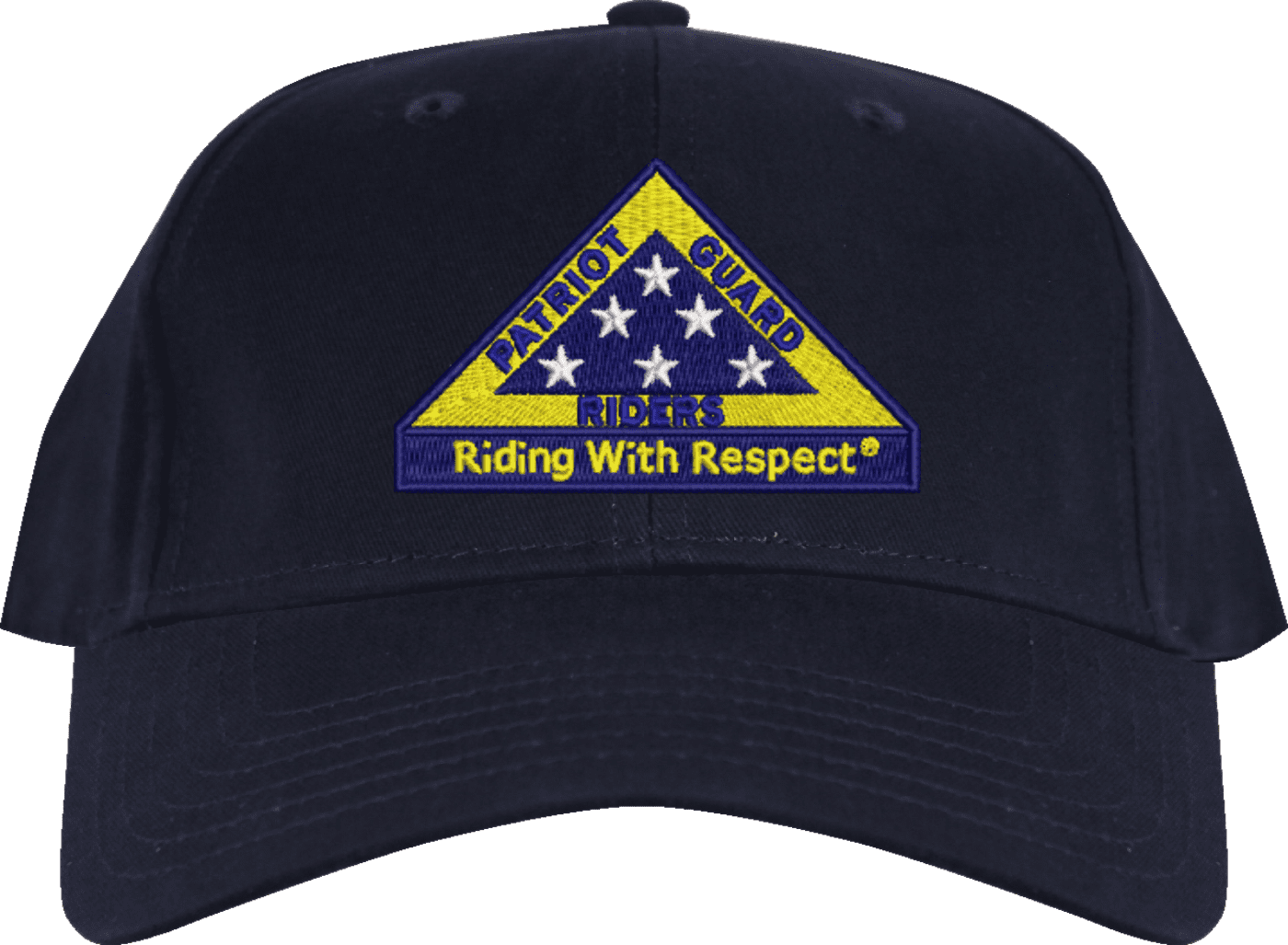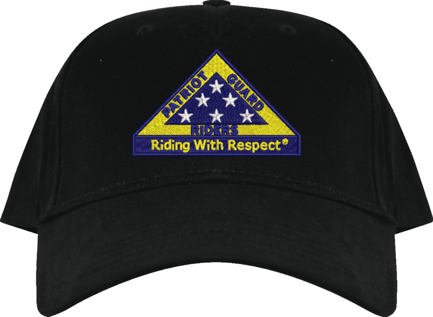 We are proud to offer this Patriot Guard "Riding with Respect" Embroidered Cap. This cap is available in a 5 panel high profile or 6 panel low profile styling. All our caps are made from top quality materials. This cap would make a wonderful addition to your collection or a great gift! All custom embroidery is done at our facility in Scottsboro, AL.*Caps ordered with embroidered back text requires an additional 1 to 2 days of production time. All personalized caps will be embroidered in ALL CAPITAL LETTERS. Caps personalized with back text are not returnable unless there is a material defect in the cap.