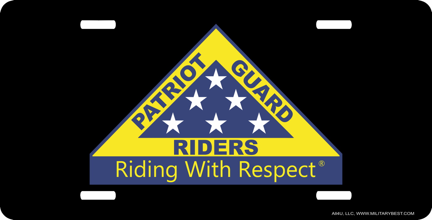 This Patriot Guard Riders "Riding with Respect" License Plate is made from heavy gauge aluminum and has a baked enamel finish to last for many years of use. Each plate measures 5 15/16" x 11 15/16". This license plate would make a wonderful addition to your collection or a great gift.