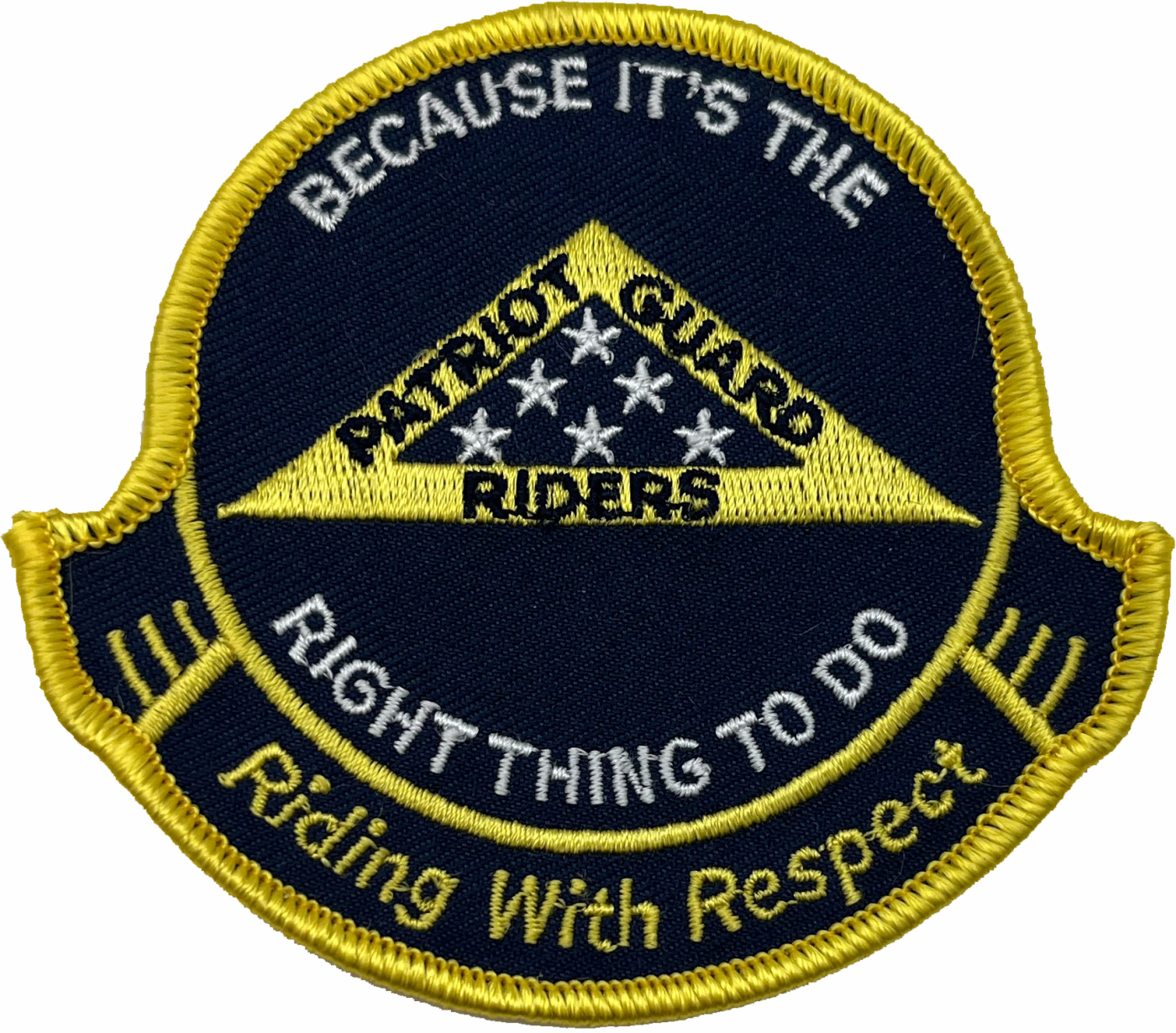 We are proud to offer this Patriot Guard "Right Thing To Do" Patch. This patch measures 3 1/2" wide x 3 1/4" tall