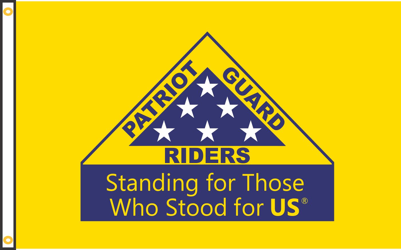 We are proud to offer this Patriot Guard Riders "Standing for Those Who Stood for Us" Flag. This flag measures 3' x 5'. This flag is made out of nylon, is single sided, and has grommets. This flag is for Parade use only. This flag is NOT designed for high speed use.