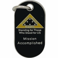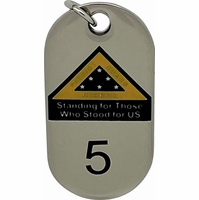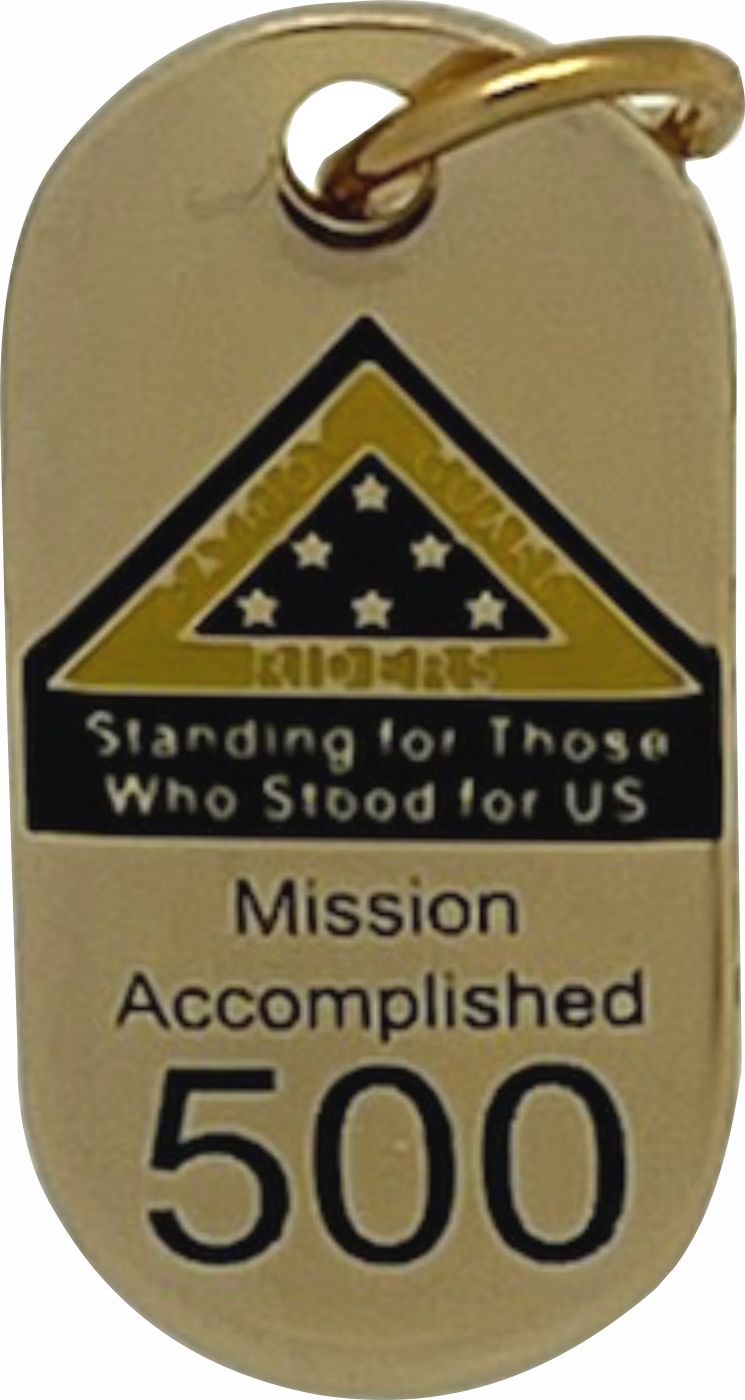 Thank you for your Patriot Guard Mission Support. This 500 Mission pin with clutch back attachment measures 1" tall x 1/2" wide.*** Pressing this pin into thick leather can result in breaking of pin. It is recommended to make holes through our leather via another method before attaching the pin ***