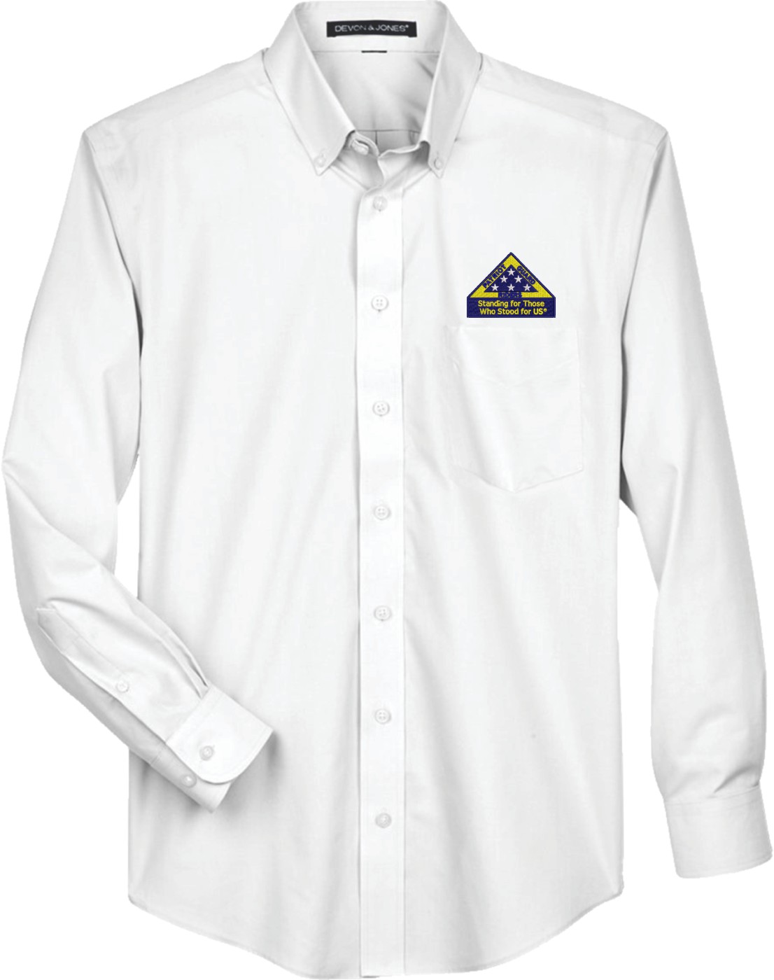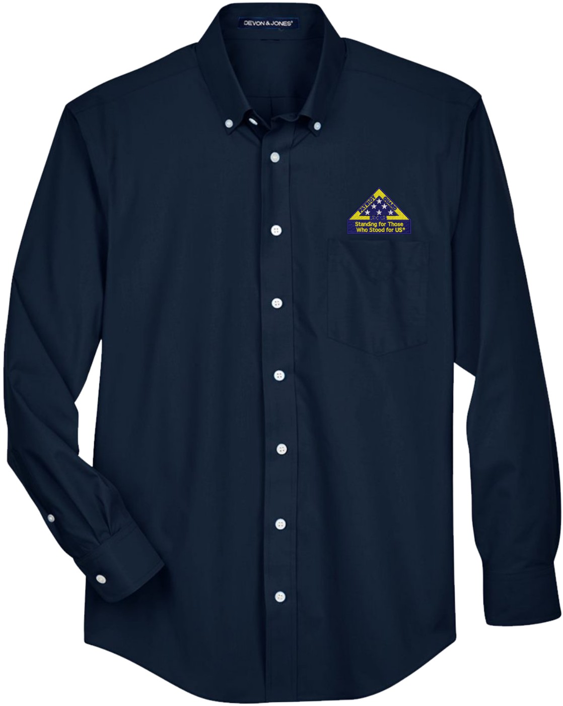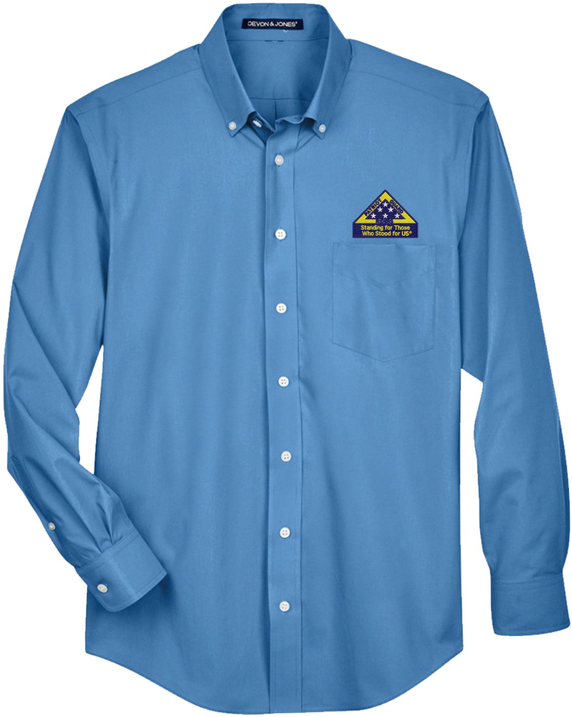 MilitaryBest has expanded its line of apparel with this PGR "Standing for Those Who Stood for Us" Embroidered Dress Shirt. This long sleeve button down dress shirt is made using a stain-release, wrinkle-free, 55% cotton/45% polyester material. The pocket over the left chest measures 4 3/4" across. Featuring a U.S. Army Afghanistan Veteran design above the pocket, this shirt is embroidered to order at our facilities in Scottsboro, AL..