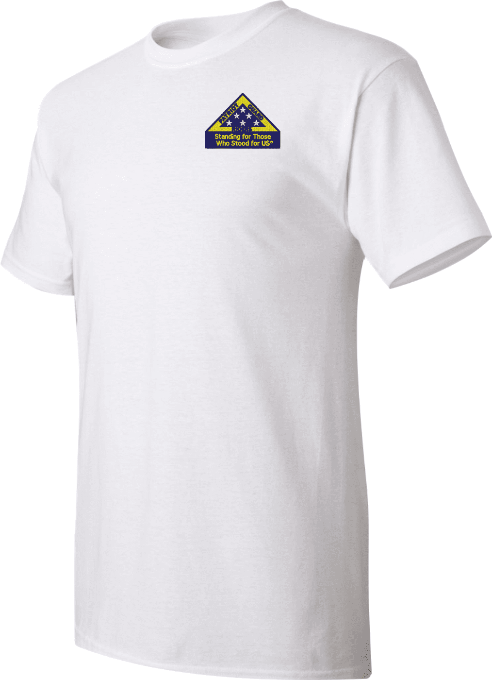 Note: Some of the Color Options pictured may not be available. Available Color Options are listed on the drop down menu above. Yellow colored text is embroidered in black on Khaki Tan and White shirts.We are proud to offer this Patriot Guard "Standing for Those Who Stood for US" Embroidered T-Shirt. This short sleeve t-shirt is made using a 6 oz pre-shrunk 100% cotton material. These quality T-Shirts are proudly embroidered at our facilities in Scottsboro, AL.