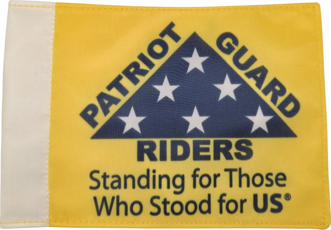 We are proud to offer this Patriot Guard Motorcycle Flag. This flag features the Patriot Guard Riders "Standing With Those Who Stood With Us" Logo. This flag measures 6 1/2" x 7 /12" and is double sided.