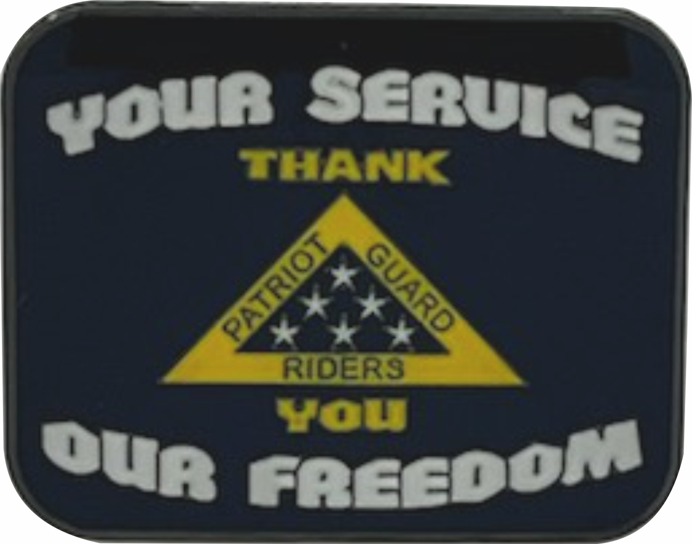 Our Patriot Guard Riders Thank You Pin measures 1 1/4" wide x 1" tall and is proudly offered as an individual pin or in packs.*** Pressing this pin into thick leather can result in breaking of pin. It is recommended to make holes through our leather via another method before attaching the pin ***