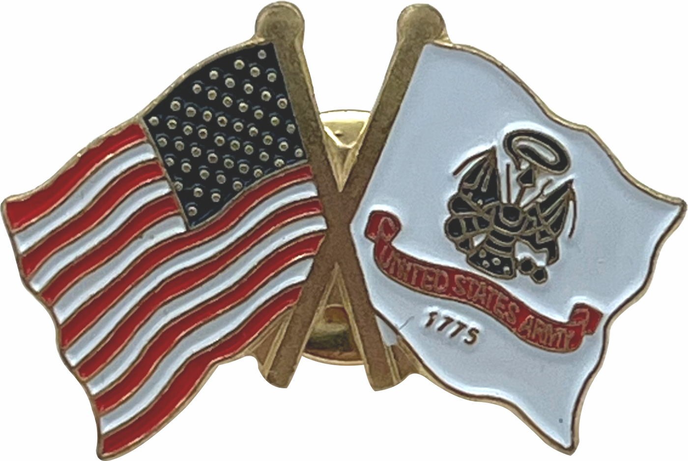We are proud to offer this USA & Army Flag Lapel Pin. This pin measures 1-1/4" wide and features a double clutch, one behind each flag. This pin is offered as an individual or in packs*** Pressing this pin into thick leather can result in breaking of pin. It is recommended to make holes through our leather via another method before attaching the pin ***