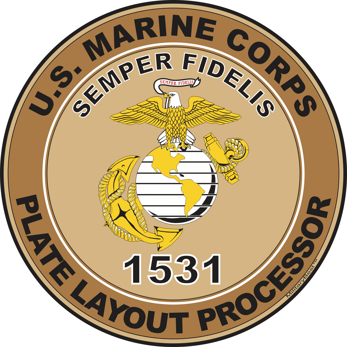 MilitaryBest is proud to offer this U.S.M.C. MOS 1531 Plate Layout Processor Decal. This U.S. Marine Corps MOS Decal is a great way to show your Marine Pride. All MilitaryBest Marine Corps stickers are printed using high-quality vinyl and U.V. resistant ink. Each is then cured, laminated and die cut for a beautiful crisp, clean and professional look. This U.S.M.C. MOS 1531 Plate Layout Processor Decal, as well as, any other MilitaryBest.com decal is proudly Made in the USA at our facilities in Scottsboro, AL. Select desired quantity and size from the menu above.Features: