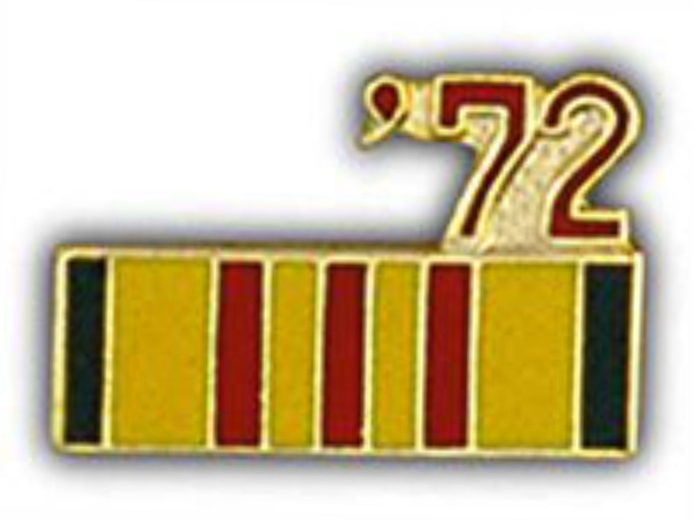 Our 1972 Vietnam military lapel pin is proudly offered as an individual pin or in multi-packs (3-packs, 6-packs and 10-packs). Wear your 1972 Vietnam Ribbon pin proudly or offer as a Military Gift to friends or family that served. Pin Saver backs are also available in the options section.