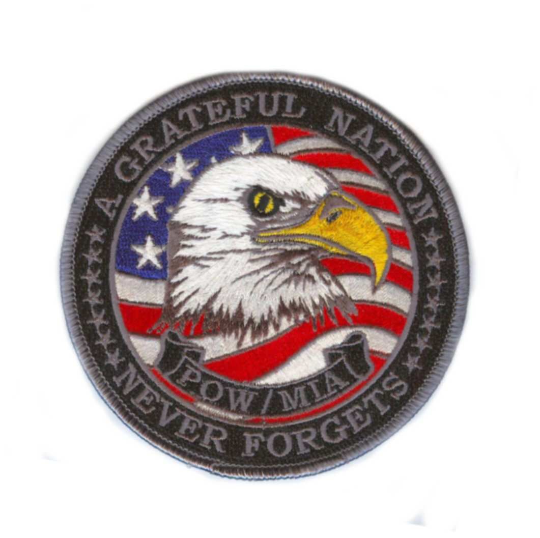 Militarybest is proud to offer this POW-MIA A Grateful Nation Never Forgets Patch. This POW-MIA A Grateful Nation Never Forgets Patch measures 4” in diameter and is made of the highest quality materials. The quality of our Military Patches is guaranteed! This Marine patch has and adhesive backing so you either iron or stitch it on.