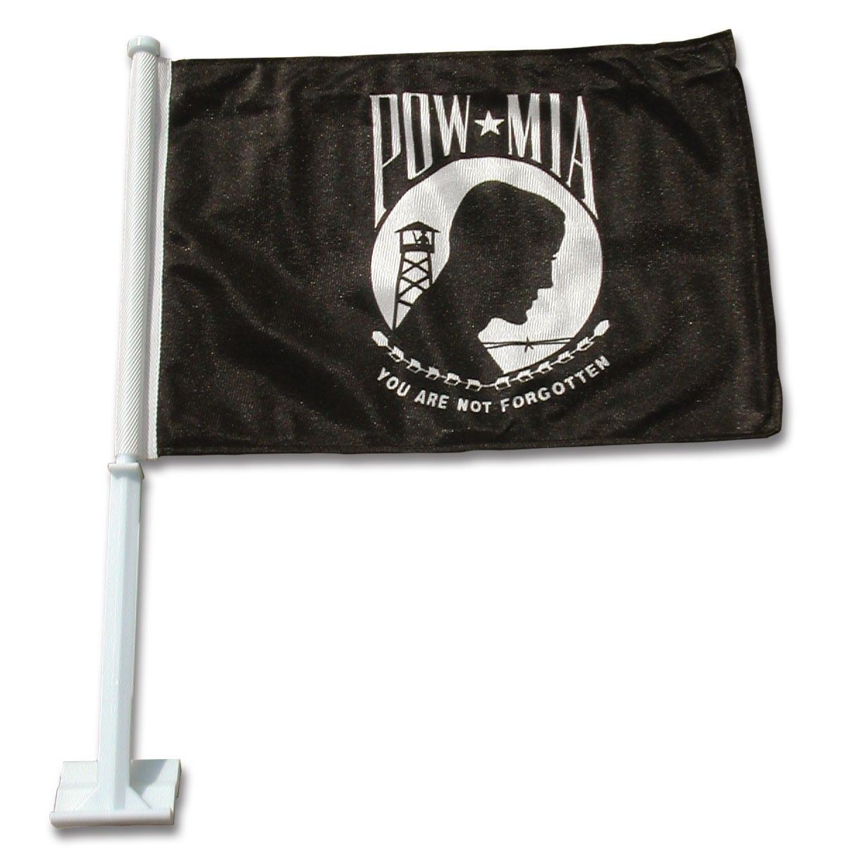 This POW/MIA car flag is made from poly nylon mix and measures 11"H x 15"W. Quality is guaranteed.