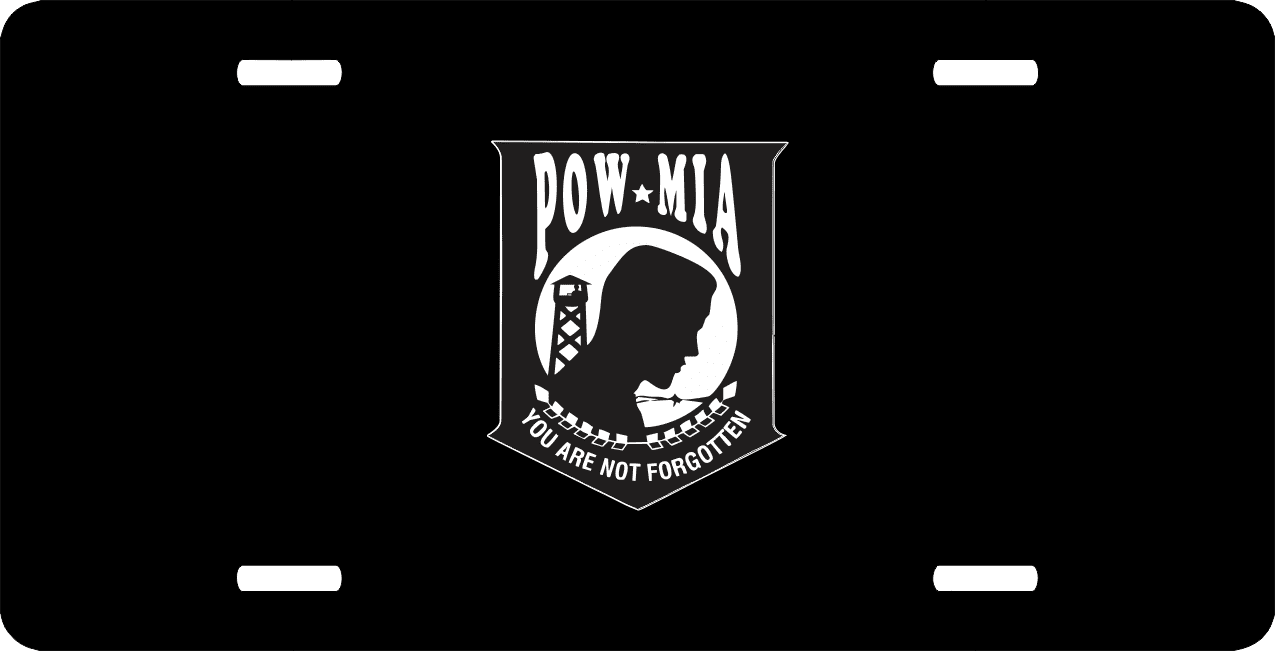 This POWMIA License Plate is made from heavy gauge aluminum and has a baked enamel finish to last for many years of use. Each plate measures 5 15/16" x 11 15/16". This license plate would make a wonderful addition to your collection or a great gift.