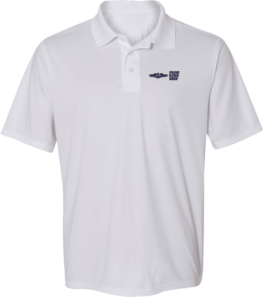 MilitaryBest is proud to offer this quality U.S. Navy Enlisted Silver Dolphins Pride Runs Deep Moisture Wicking Polo. This Polo is made using 50/50 cotton/polyester moisture wicking material. These quality Military Polos are proudly embroidered at our facilities in Scottsboro, AL. Support the Navy MWR program by purchasing only from Licensed Vendors.