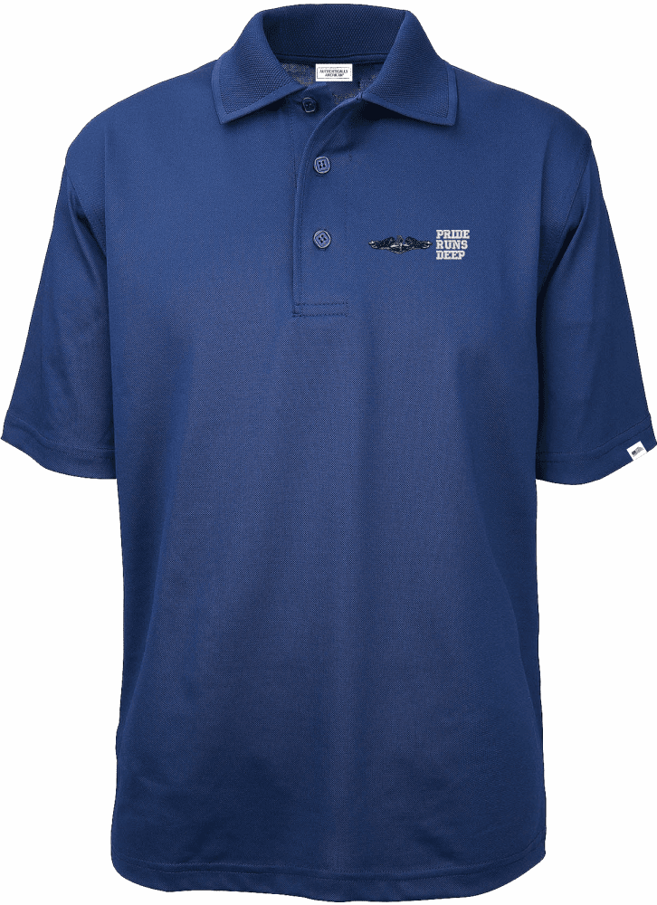 MilitaryBest proudly offers a top-quality U.S. Navy Enlisted Silver Dolphins Pride Runs Deep Men's Moisture Wicking Polo made in the USA by Authentically American whom we have proudly partnered with.- Proudly Made and Embroidered in the USA.