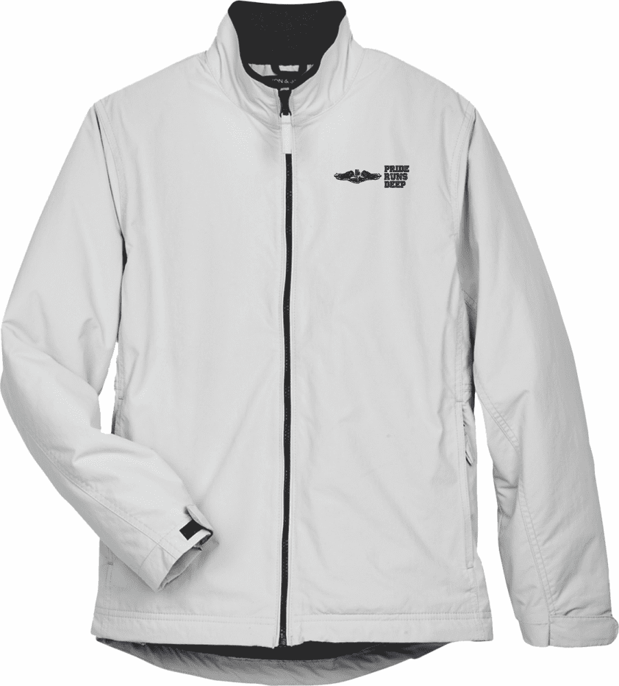 MilitaryBest is proud to offer this U.S. Navy Enlisted Silver Dolphins Pride Runs Deep Women's Devon & Jones 3-Season Jacket. Each ladies three season jacket is made from a 3-Layer system consisting of a nylon shell, an insulator layer, Nylon-lined sleeves, and an inside layer of fleece for comfort. Each jacket’s features include a sturdy black enamel front-zipper, raglan sleeves, outsize zip pockets, an inside zip security pocket, YKK zippers, and a banded-bottom. As with all MilitaryBest products, your satisfaction is guaranteed!| S | M | L | XL | 2XL | |